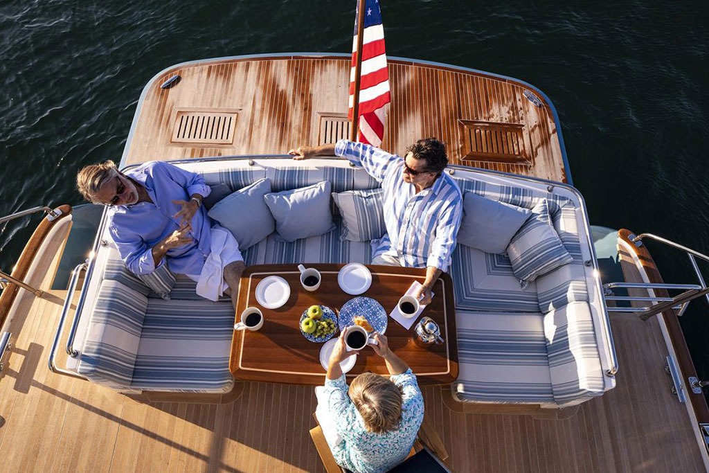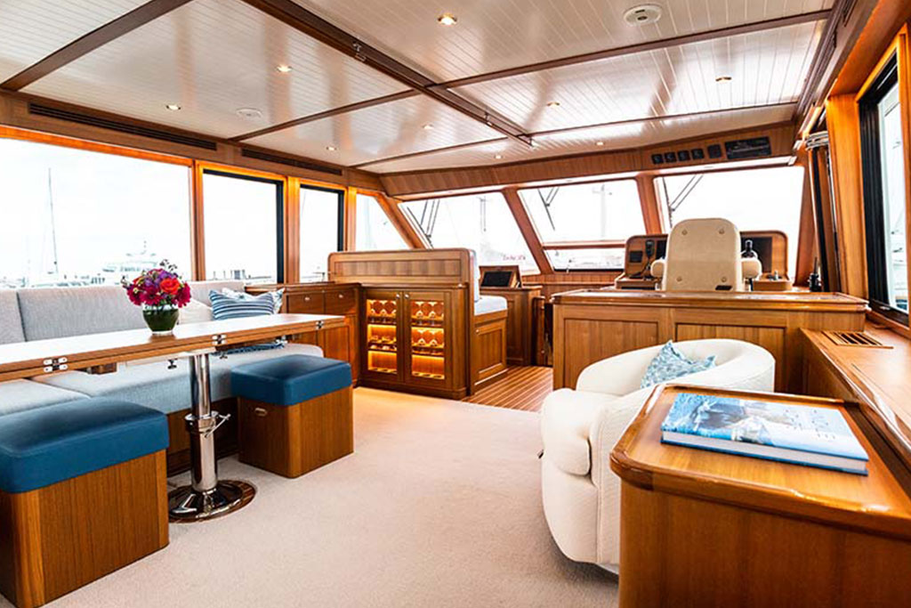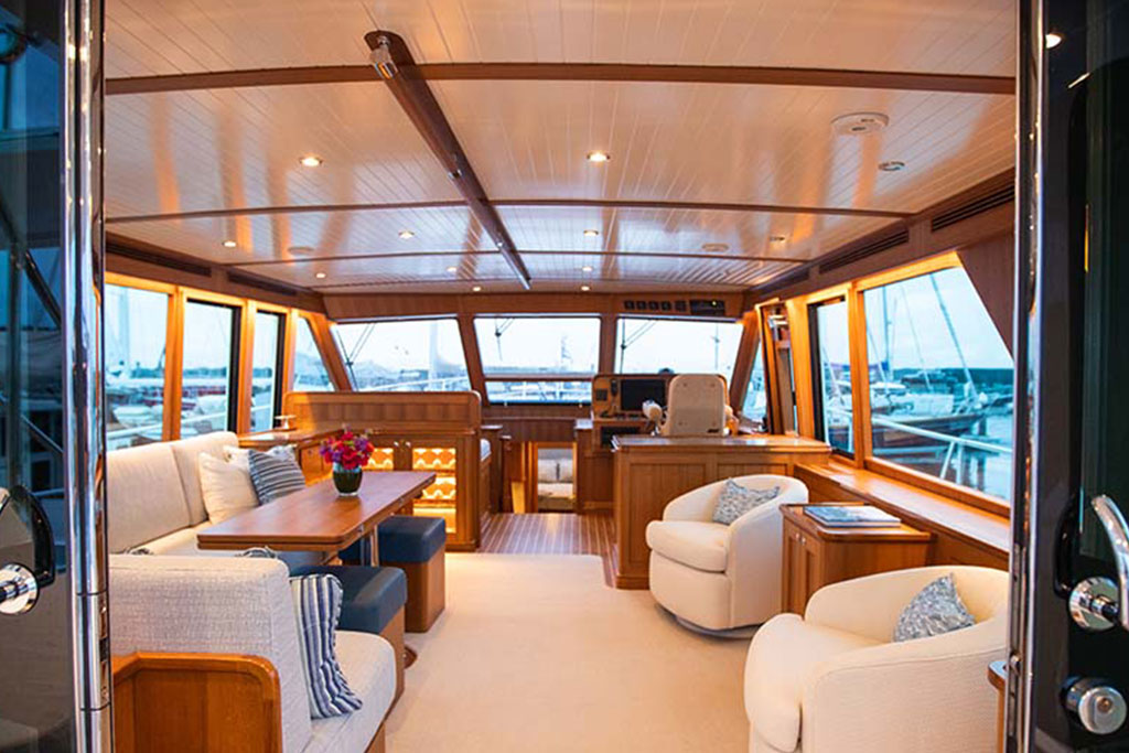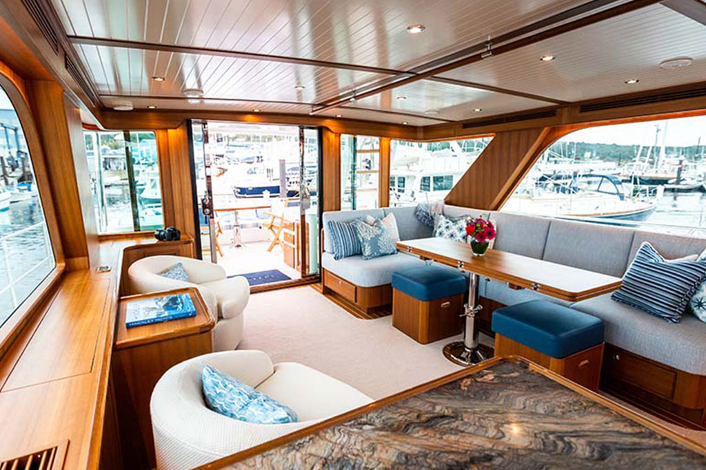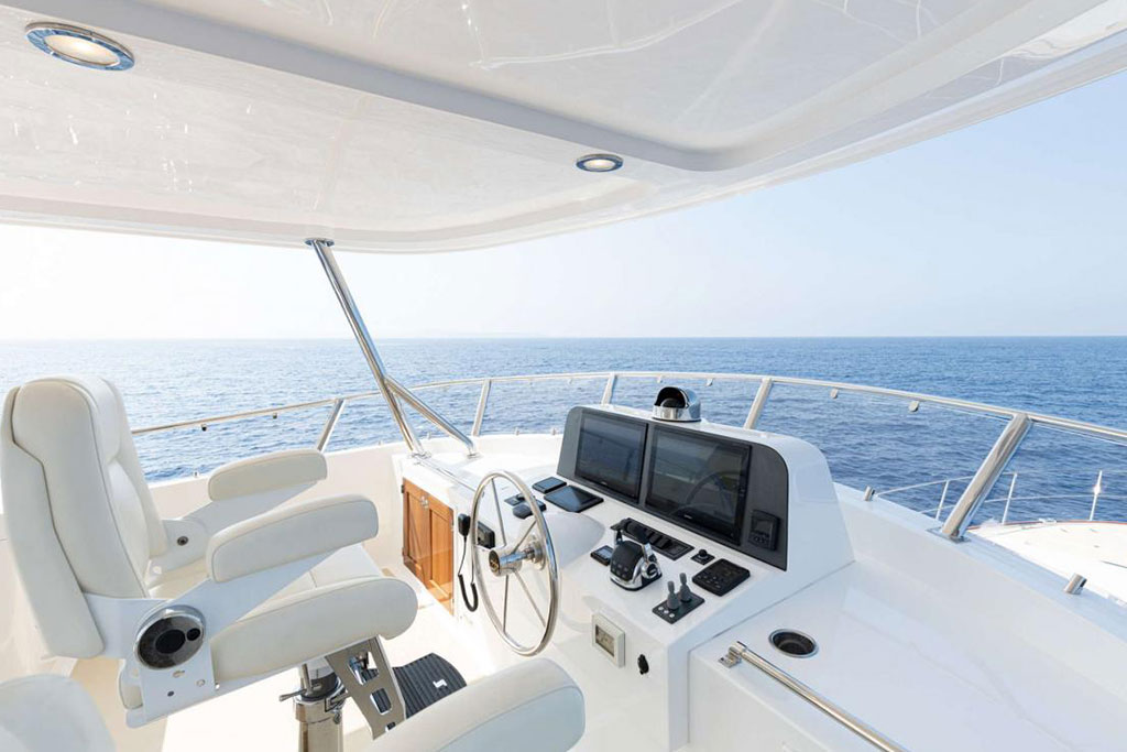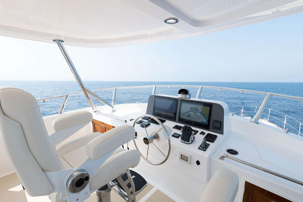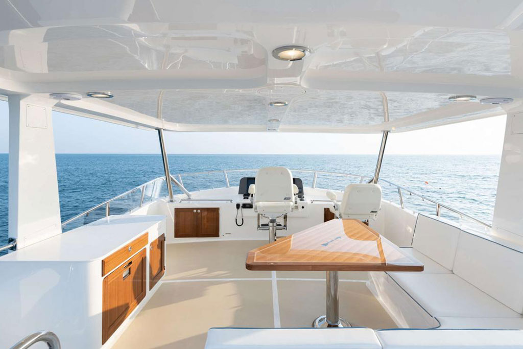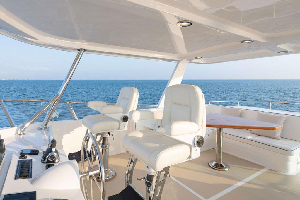 Boasting twin 1,000 hp outboard engines with a top speed of 31 knots, the Hunt Ocean 63 delivers exceptional mileage, range, and durability. A Deep-V hull with a patented 20-degree deadrise ensures smooth sailing in still waters and choppy seas, while the upper helm features two convenient chartplotters to monitor your course, location, and speed.